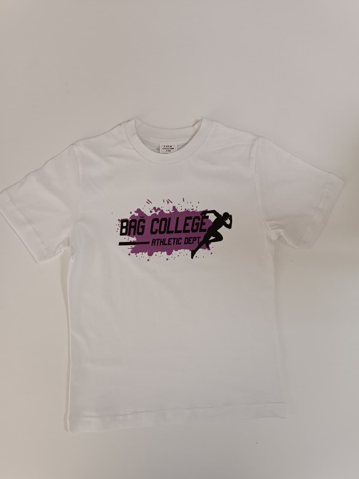 Mor Baskılı Beyaz Tişört